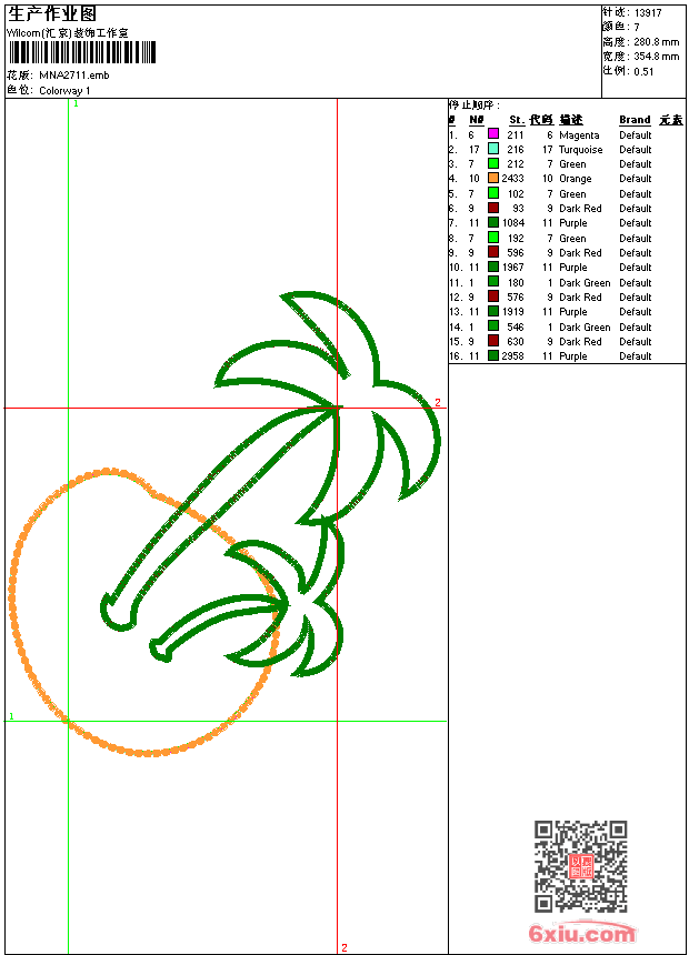 - 版带文件需绣花软件方可打开,可配色打印导出各种格式或直接上机绣。如无绣花软件可下载1:1模拟效果图。