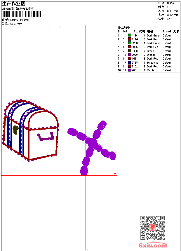 - 版带文件需绣花软件方可打开,可配色打印导出各种格式或直接上机绣。如无绣花软件可下载1:1模拟效果图。