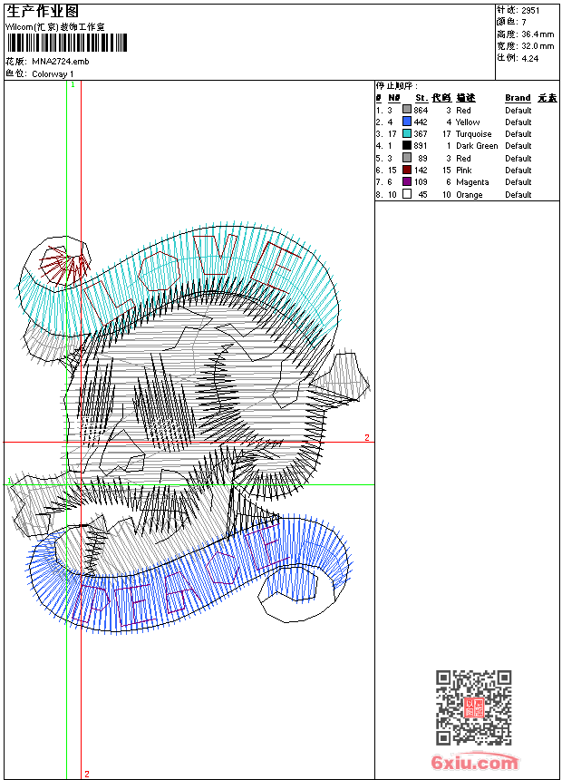 - 版带文件需绣花软件方可打开,可配色打印导出各种格式或直接上机绣。如无绣花软件可下载1:1模拟效果图。