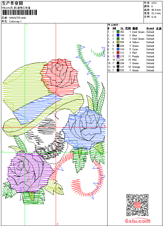 - emb花版参数: 大小:45.00 KB / 尺寸:32*50[毫米] / 针数:3373针 / 线色:9 / 格式:emb / 版本:9