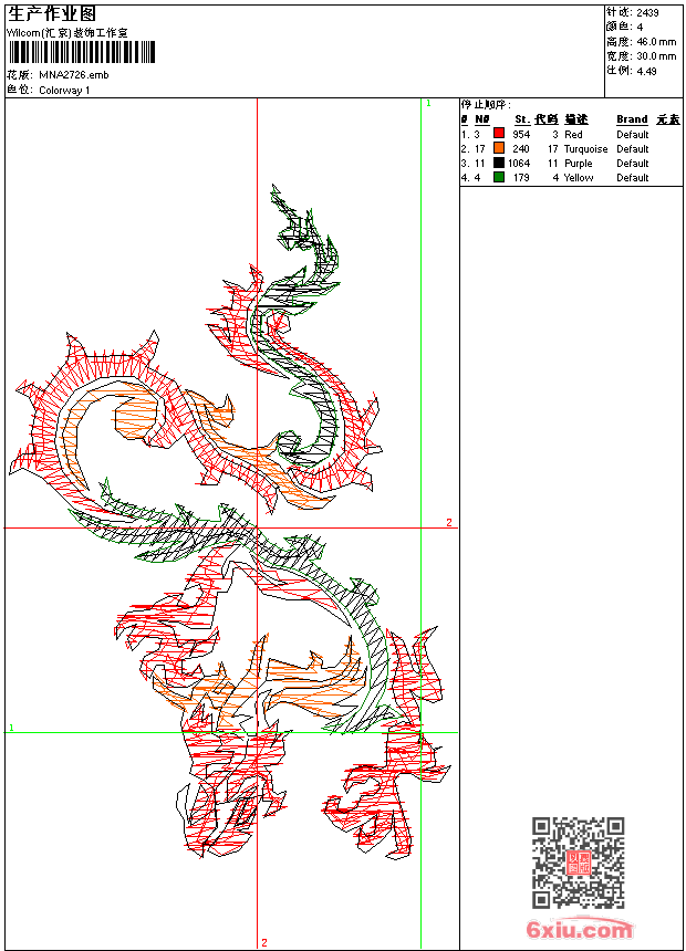- emb花版参数: 大小:36.50 KB / 尺寸:30*46[毫米] / 针数:2439针 / 线色:4 / 格式:emb / 版本:9