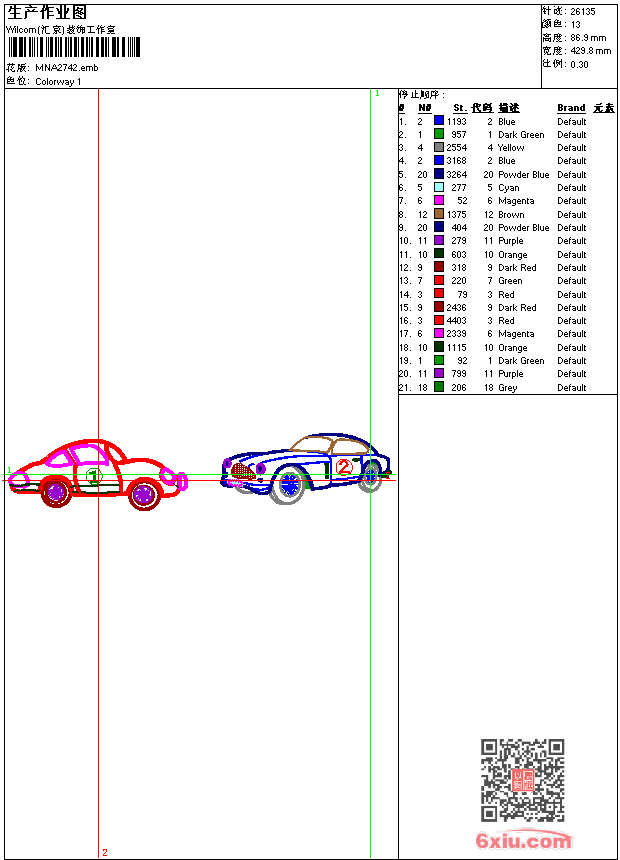 - 版带文件需绣花软件方可打开,可配色打印导出各种格式或直接上机绣。如无绣花软件可下载1:1模拟效果图。