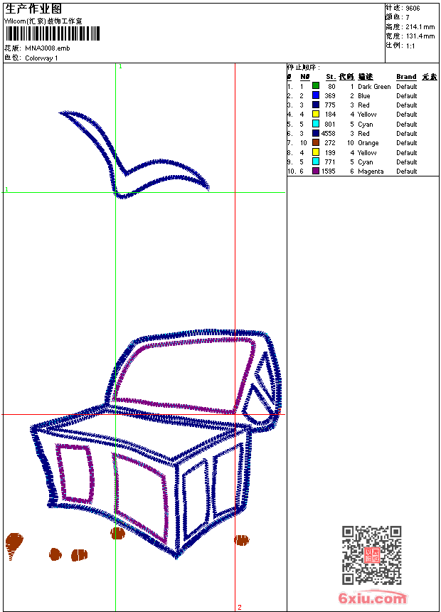 - 版带文件需绣花软件方可打开,可配色打印导出各种格式或直接上机绣。如无绣花软件可下载1:1模拟效果图。