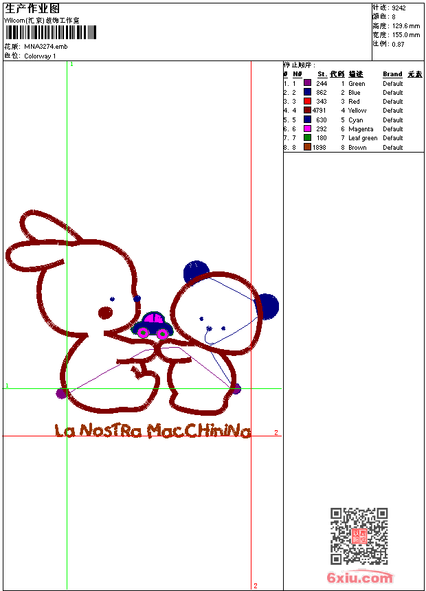 - 版带文件需绣花软件方可打开,可配色打印导出各种格式或直接上机绣。如无绣花软件可下载1:1模拟效果图。