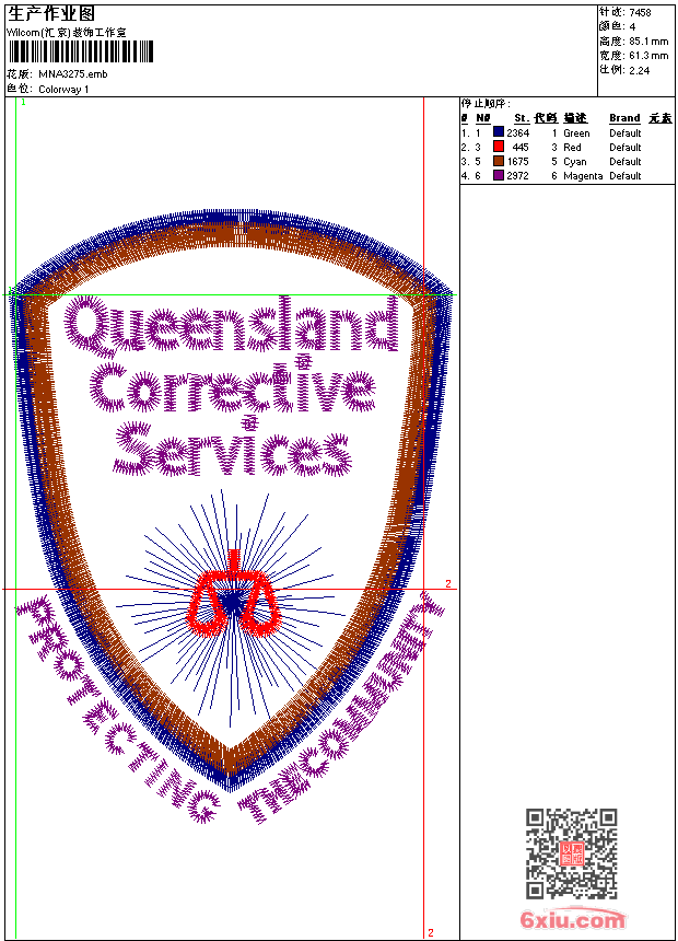 - emb花版参数: 大小:53.00 KB / 尺寸:61*85[毫米] / 针数:7458针 / 线色:4 / 格式:emb / 版本:9