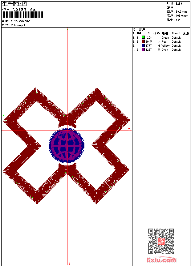 - emb花版参数: 大小:31.50 KB / 尺寸:109*100[毫米] / 针数:6299针 / 线色:4 / 格式:emb / 版本:9