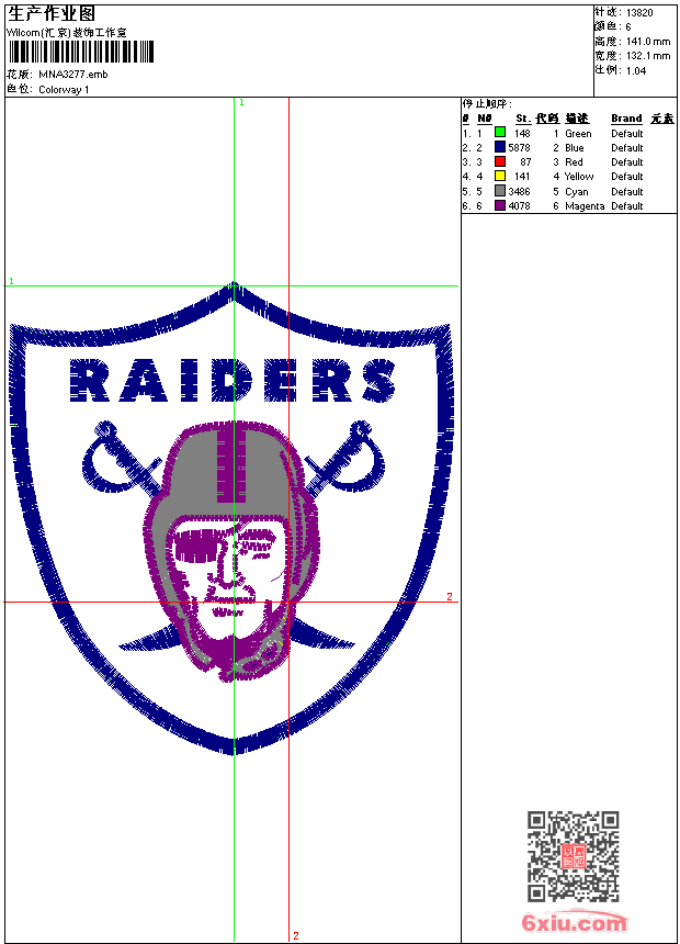 - emb花版参数: 大小:49.00 KB / 尺寸:132*141[毫米] / 针数:13820针 / 线色:6 / 格式:emb / 版本:9