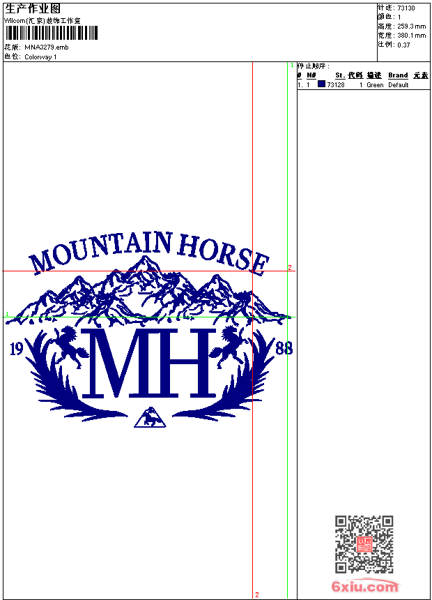 - emb花版参数: 大小:262.50 KB / 尺寸:380*259[毫米] / 针数:73130针 / 线色:1 / 格式:emb / 版本:9