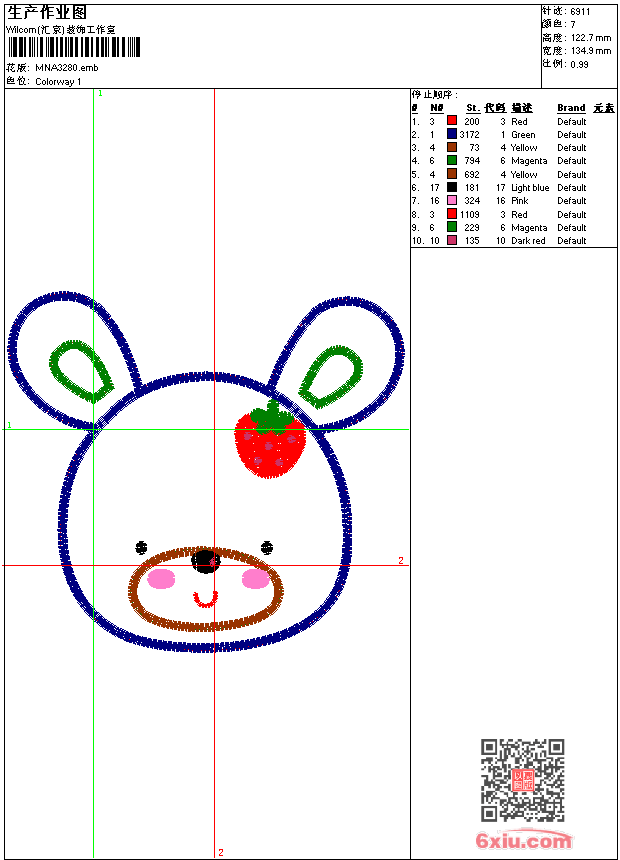 - 版带文件需绣花软件方可打开,可配色打印导出各种格式或直接上机绣。如无绣花软件可下载1:1模拟效果图。