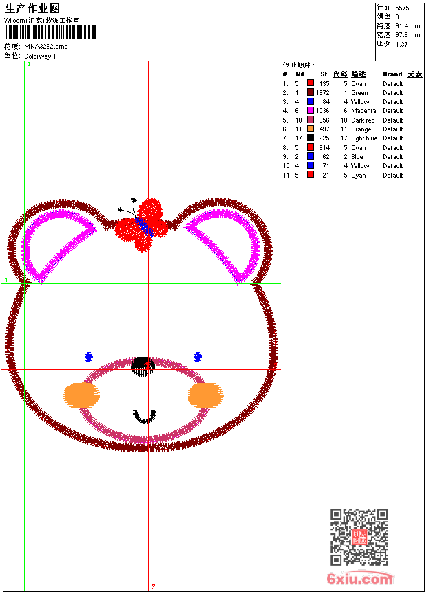 - 版带文件需绣花软件方可打开,可配色打印导出各种格式或直接上机绣。如无绣花软件可下载1:1模拟效果图。
