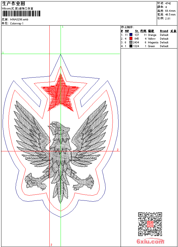 - 版带文件需绣花软件方可打开,可配色打印导出各种格式或直接上机绣。如无绣花软件可下载1:1模拟效果图。