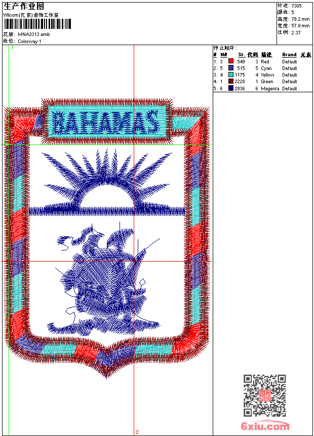 - emb花版参数: 大小:46.50 KB / 尺寸:58*79[毫米] / 针数:7305针 / 线色:5 / 格式:emb / 版本:9