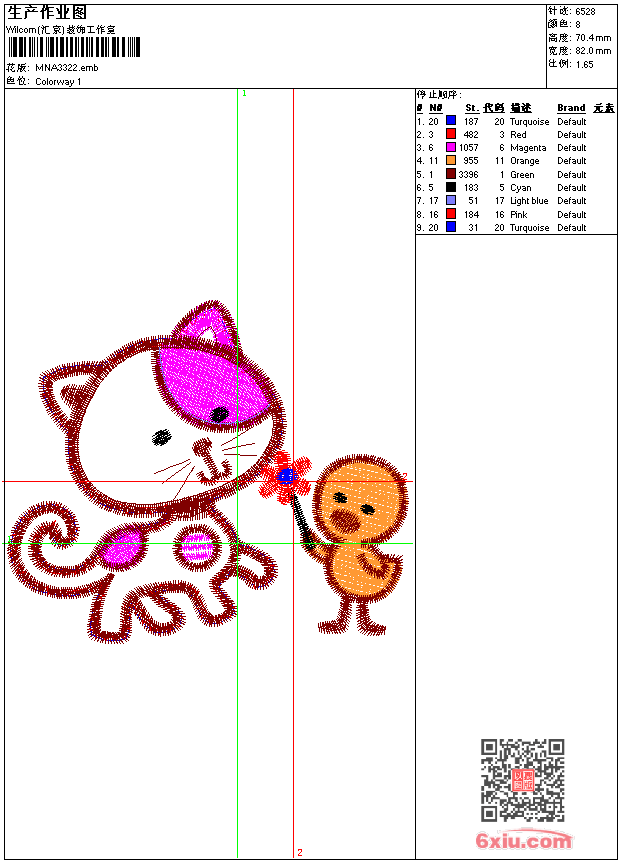 - 版带文件需绣花软件方可打开,可配色打印导出各种格式或直接上机绣。如无绣花软件可下载1:1模拟效果图。