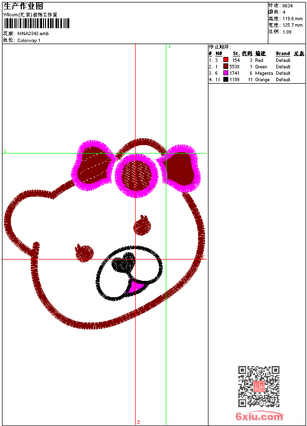 - 版带文件需绣花软件方可打开,可配色打印导出各种格式或直接上机绣。如无绣花软件可下载1:1模拟效果图。