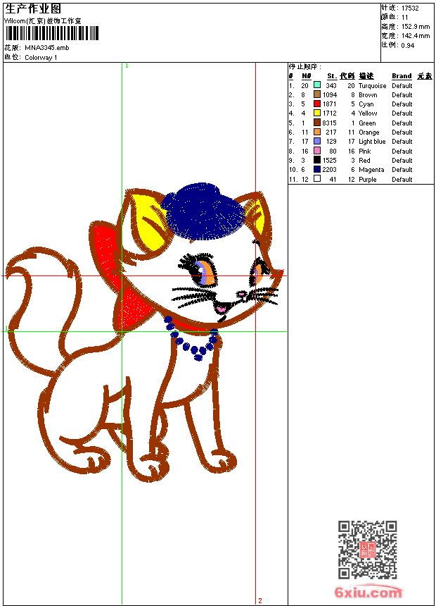 - 版带文件需绣花软件方可打开,可配色打印导出各种格式或直接上机绣。如无绣花软件可下载1:1模拟效果图。