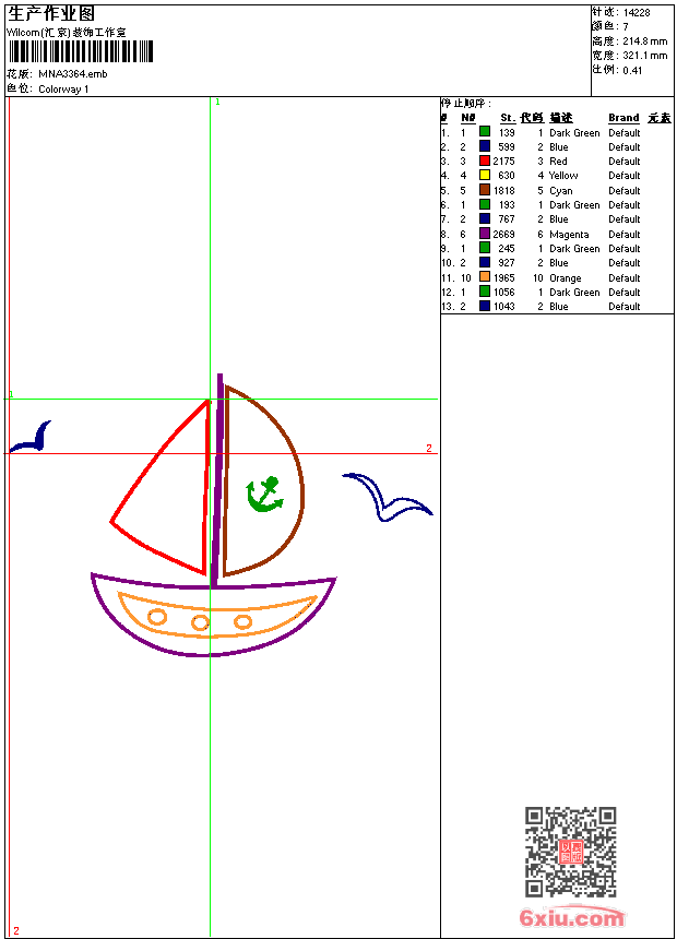 - emb花版参数: 大小:89.00 KB / 尺寸:321*215[毫米] / 针数:14228针 / 线色:7 / 格式:emb / 版本:9