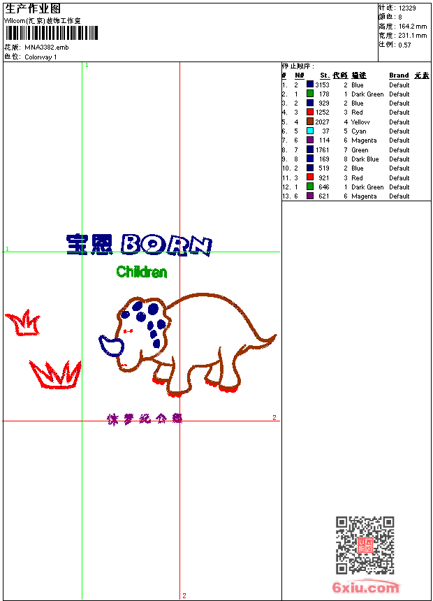 - 版带文件需绣花软件方可打开,可配色打印导出各种格式或直接上机绣。如无绣花软件可下载1:1模拟效果图。