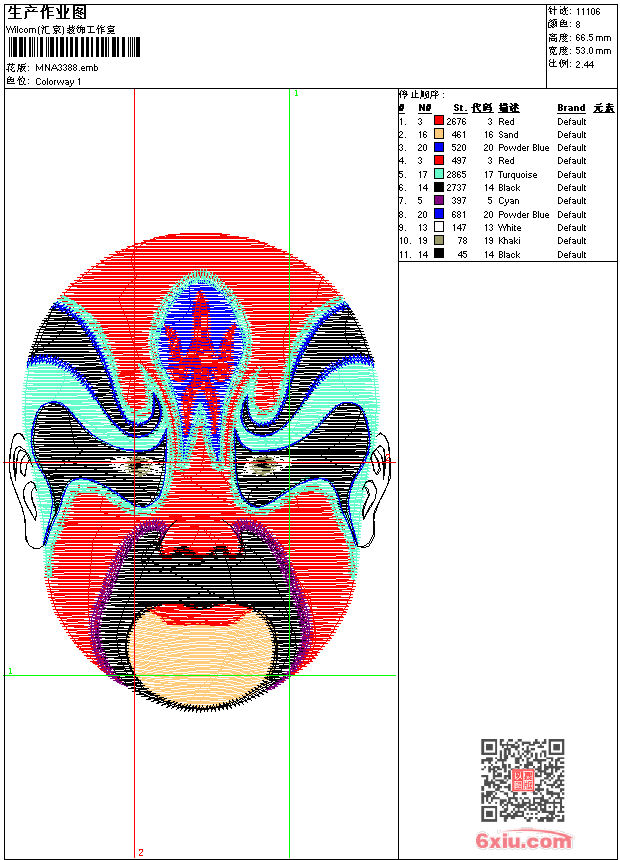 - 版带文件需绣花软件方可打开,可配色打印导出各种格式或直接上机绣。如无绣花软件可下载1:1模拟效果图。