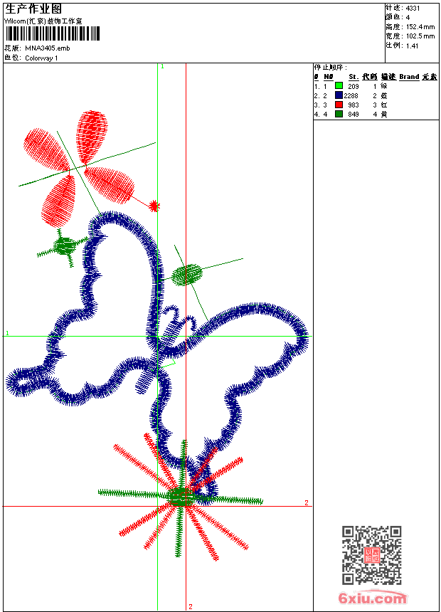 - emb花版参数: 大小:31.50 KB / 尺寸:103*152[毫米] / 针数:4331针 / 线色:4 / 格式:emb / 版本:9
