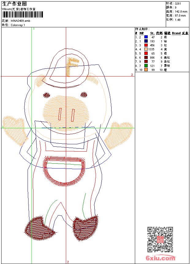 - emb花版参数: 大小:40.50 KB / 尺寸:97*143[毫米] / 针数:3281针 / 线色:9 / 格式:emb / 版本:9