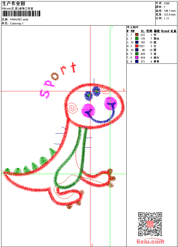 - 版带文件需绣花软件方可打开,可配色打印导出各种格式或直接上机绣。如无绣花软件可下载1:1模拟效果图。