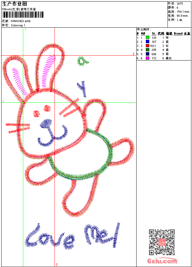 - emb花版参数: 大小:34.50 KB / 尺寸:99*154[毫米] / 针数:3075针 / 线色:6 / 格式:emb / 版本:9