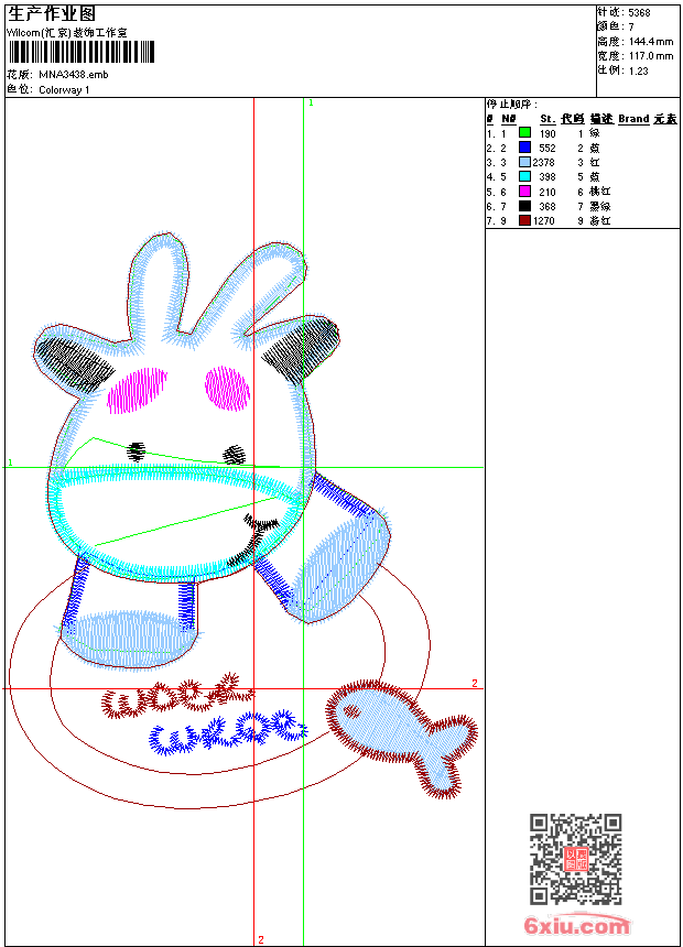 - emb花版参数: 大小:53.50 KB / 尺寸:117*144[毫米] / 针数:5368针 / 线色:7 / 格式:emb / 版本:9