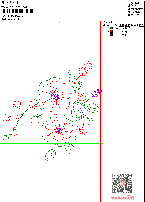 - emb花版参数: 大小:38.00 KB / 尺寸:81*81[毫米] / 针数:2675针 / 线色:3 / 格式:emb / 版本:9