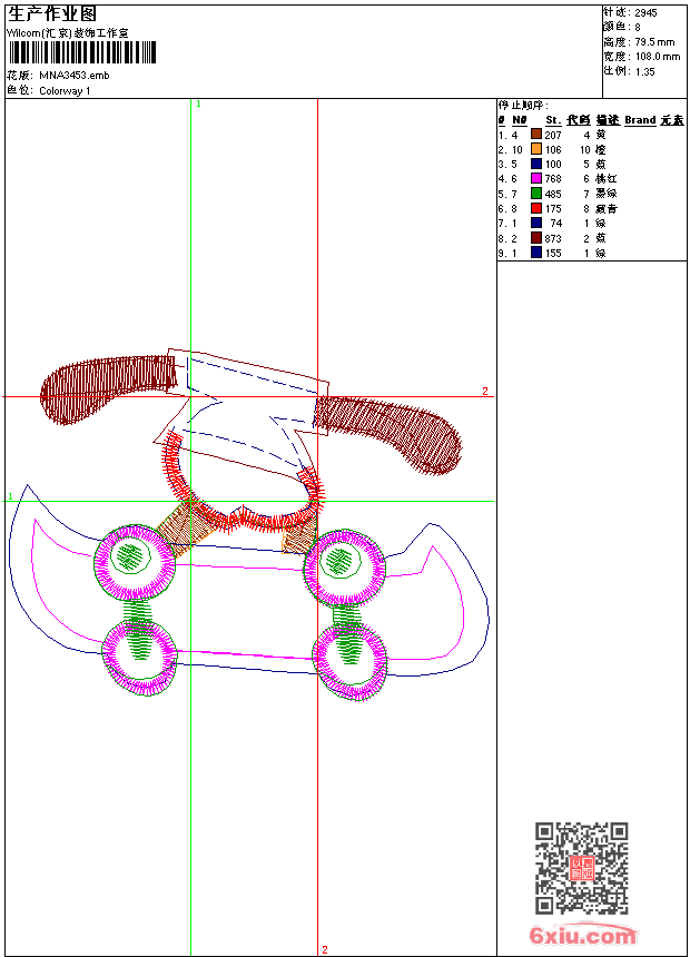 - emb花版参数: 大小:48.00 KB / 尺寸:108*79[毫米] / 针数:2945针 / 线色:8 / 格式:emb / 版本:9