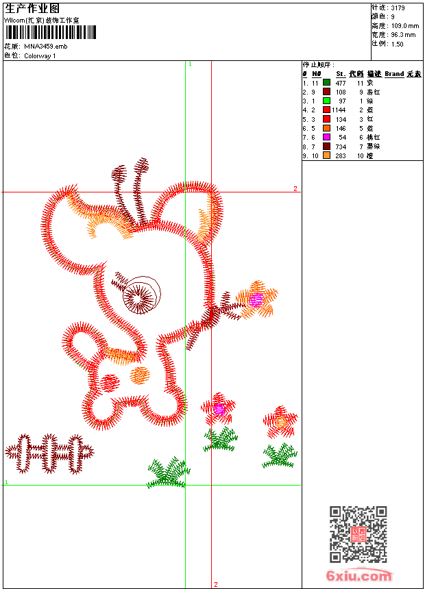 - 版带文件需绣花软件方可打开,可配色打印导出各种格式或直接上机绣。如无绣花软件可下载1:1模拟效果图。