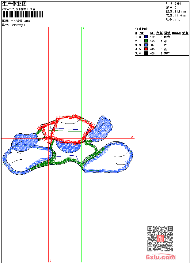 - emb花版参数: 大小:38.00 KB / 尺寸:131*62[毫米] / 针数:2964针 / 线色:5 / 格式:emb / 版本:9