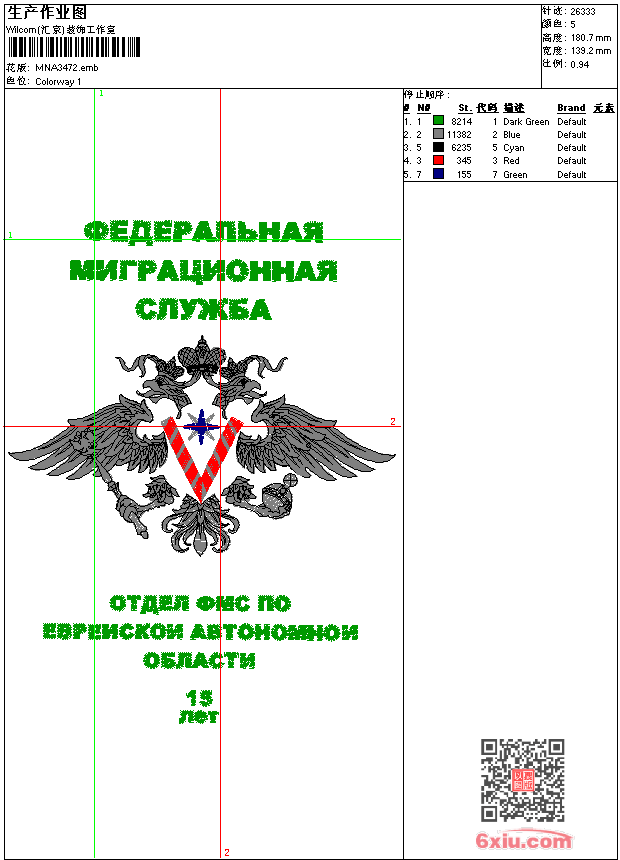 - emb花版参数: 大小:133.50 KB / 尺寸:139*181[毫米] / 针数:26333针 / 线色:5 / 格式:emb / 版本:9