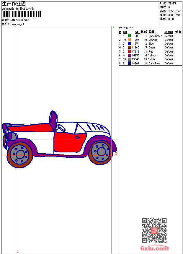 - emb花版参数: 大小:176.00 KB / 尺寸:370*185[毫米] / 针数:78895针 / 线色:8 / 格式:emb / 版本:9