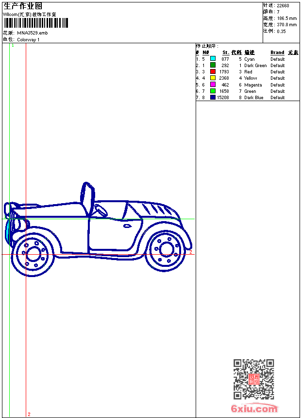 - emb花版参数: 大小:158.50 KB / 尺寸:371*186[毫米] / 针数:22660针 / 线色:7 / 格式:emb / 版本:9