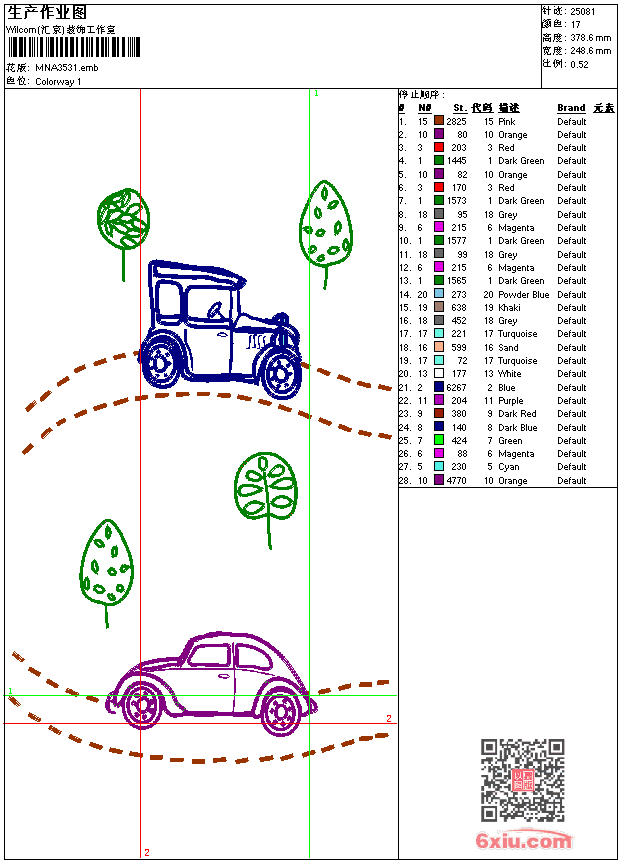 - 版带文件需绣花软件方可打开,可配色打印导出各种格式或直接上机绣。如无绣花软件可下载1:1模拟效果图。