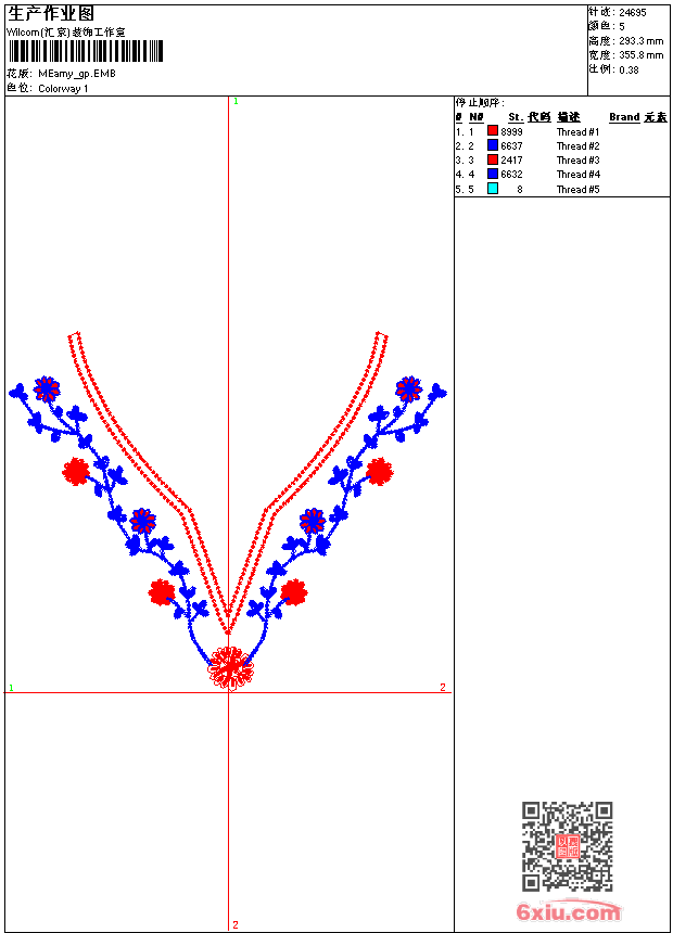- emb花版参数: 大小:106.50 KB / 尺寸:356*293[毫米] / 针数:24695针 / 线色:5 / 格式:emb / 版本:9
