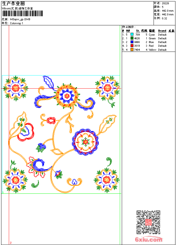 - emb花版参数: 大小:144.50 KB / 尺寸:442*442[毫米] / 针数:20226针 / 线色:5 / 格式:emb / 版本:9