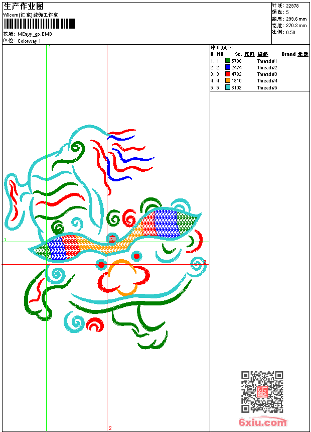 - emb花版参数: 大小:69.00 KB / 尺寸:270*300[毫米] / 针数:22978针 / 线色:5 / 格式:emb / 版本:9