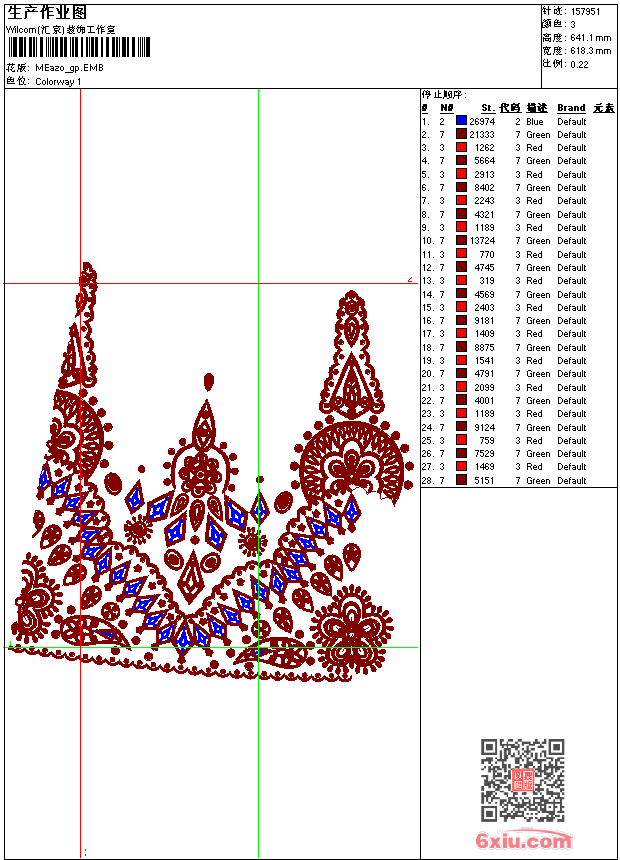 - emb花版参数: 大小:782.50 KB / 尺寸:618*641[毫米] / 针数:157951针 / 线色:3 / 格式:emb / 版本:9