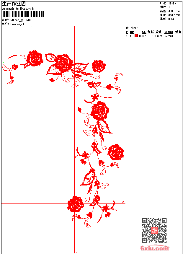 - emb花版参数: 大小:124.50 KB / 尺寸:313*459[毫米] / 针数:16889针 / 线色:1 / 格式:emb / 版本:9