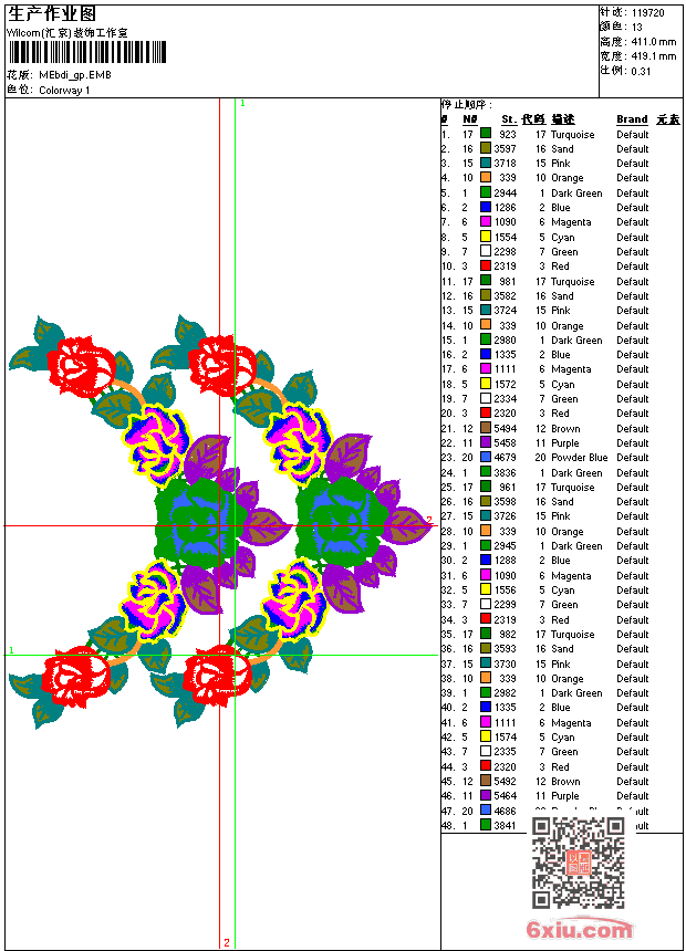 - emb花版参数: 大小:639.00 KB / 尺寸:419*411[毫米] / 针数:119720针 / 线色:13 / 格式:emb / 版本:9
