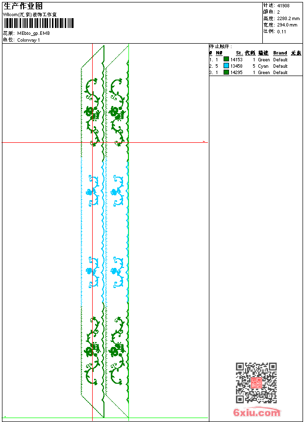 - emb花版参数: 大小:183.50 KB / 尺寸:294*2280[毫米] / 针数:41908针 / 线色:2 / 格式:emb / 版本:9