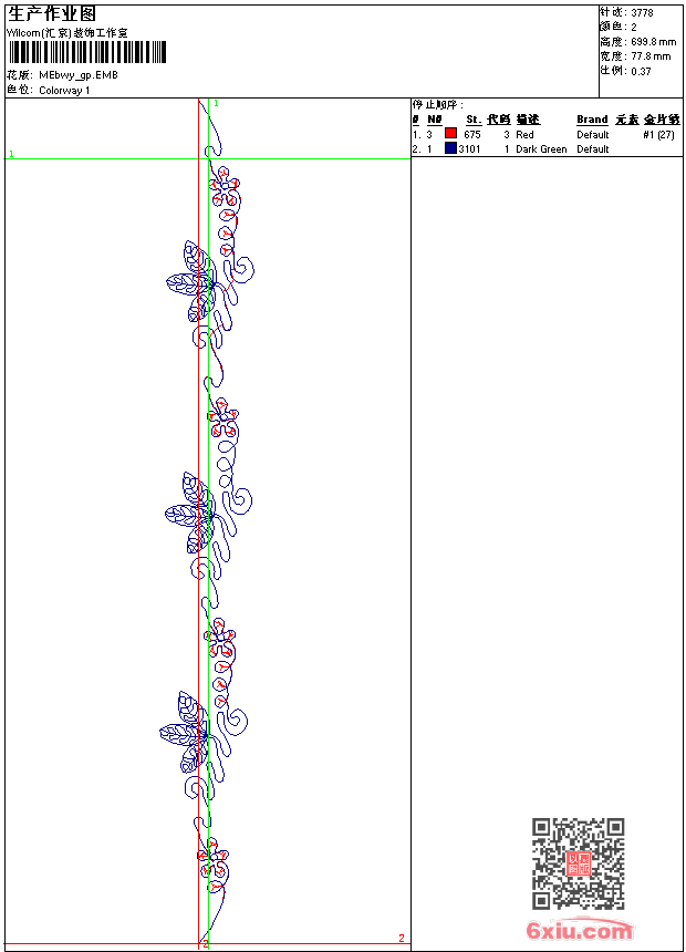 - emb花版参数: 大小:44.50 KB / 尺寸:78*700[毫米] / 针数:3778针 / 线色:2 / 格式:emb / 版本:9