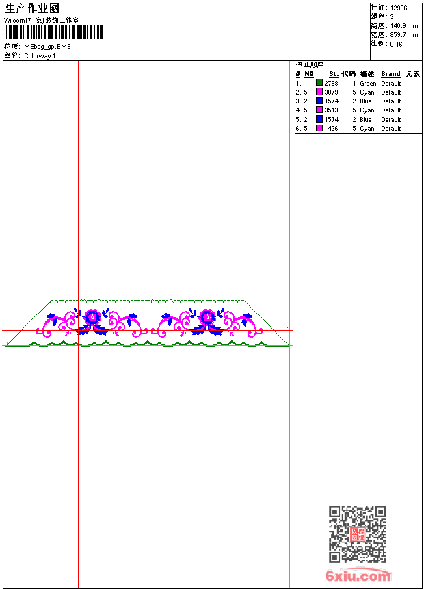 - emb花版参数: 大小:98.00 KB / 尺寸:860*141[毫米] / 针数:12966针 / 线色:3 / 格式:emb / 版本:9