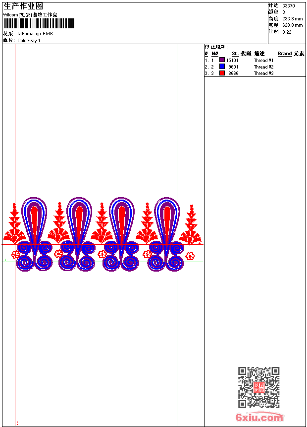 - emb花版参数: 大小:95.50 KB / 尺寸:621*234[毫米] / 针数:33370针 / 线色:3 / 格式:emb / 版本:9