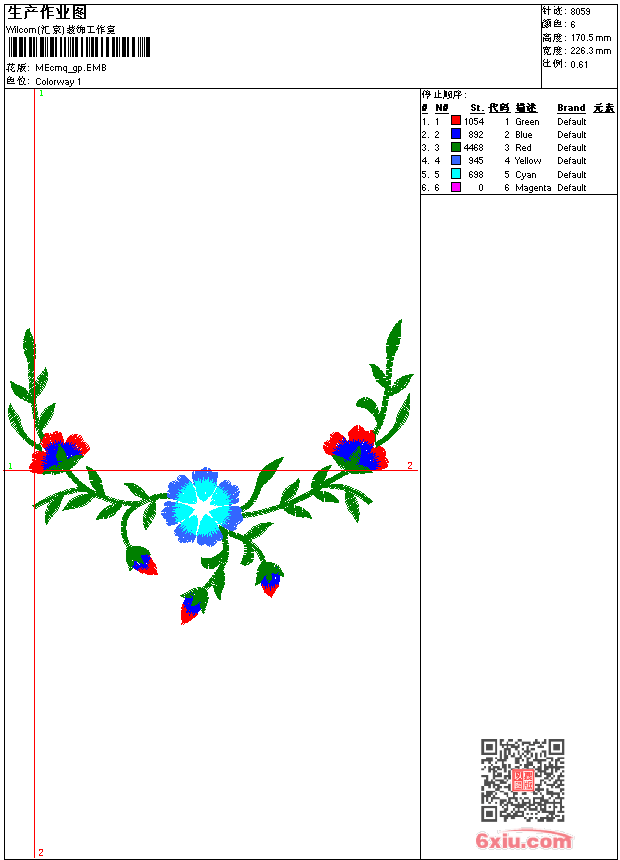 - emb花版参数: 大小:54.00 KB / 尺寸:226*171[毫米] / 针数:8059针 / 线色:6 / 格式:emb / 版本:9