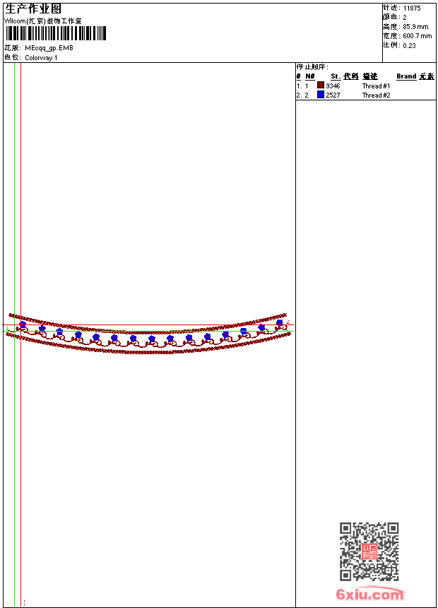 - emb花版参数: 大小:63.00 KB / 尺寸:601*86[毫米] / 针数:11875针 / 线色:2 / 格式:emb / 版本:9