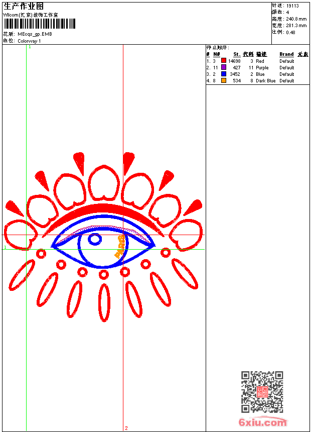 - 版带文件需绣花软件方可打开,可配色打印导出各种格式或直接上机绣。如无绣花软件可下载1:1模拟效果图。