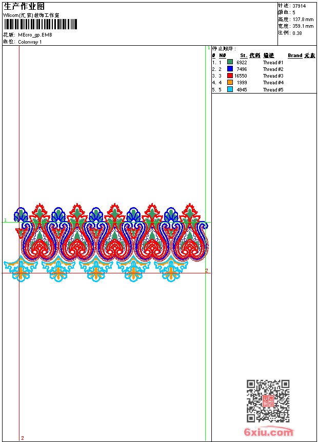 - emb花版参数: 大小:113.00 KB / 尺寸:359*138[毫米] / 针数:37914针 / 线色:5 / 格式:emb / 版本:9