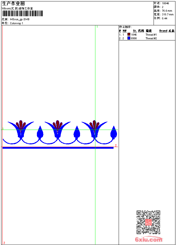 - emb花版参数: 大小:33.00 KB / 尺寸:311*77[毫米] / 针数:10046针 / 线色:2 / 格式:emb / 版本:9